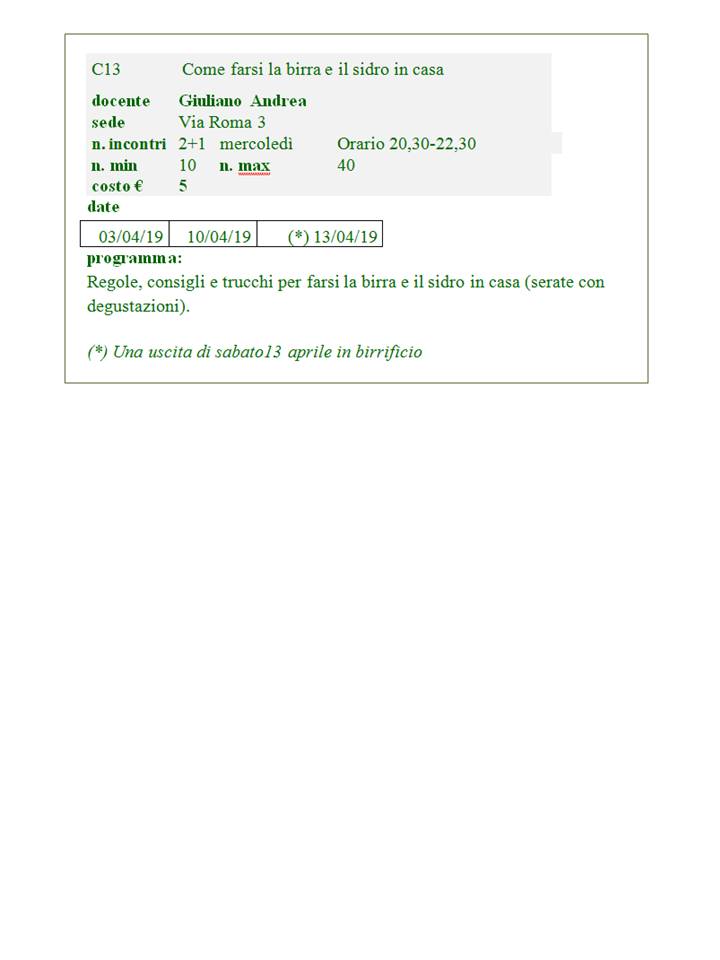 come farsi la birra e il sidro in casa - nuovo UNITRE